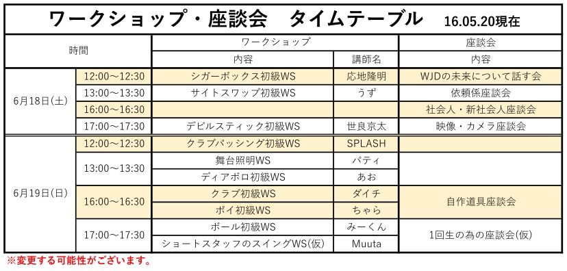14.WJD2016 は少人数で企画・運営しています。企画サイドへの過剰な期待はお控え下さい。各自がイベント作りの担い手であるという意識を持っての参加をお願い致します。